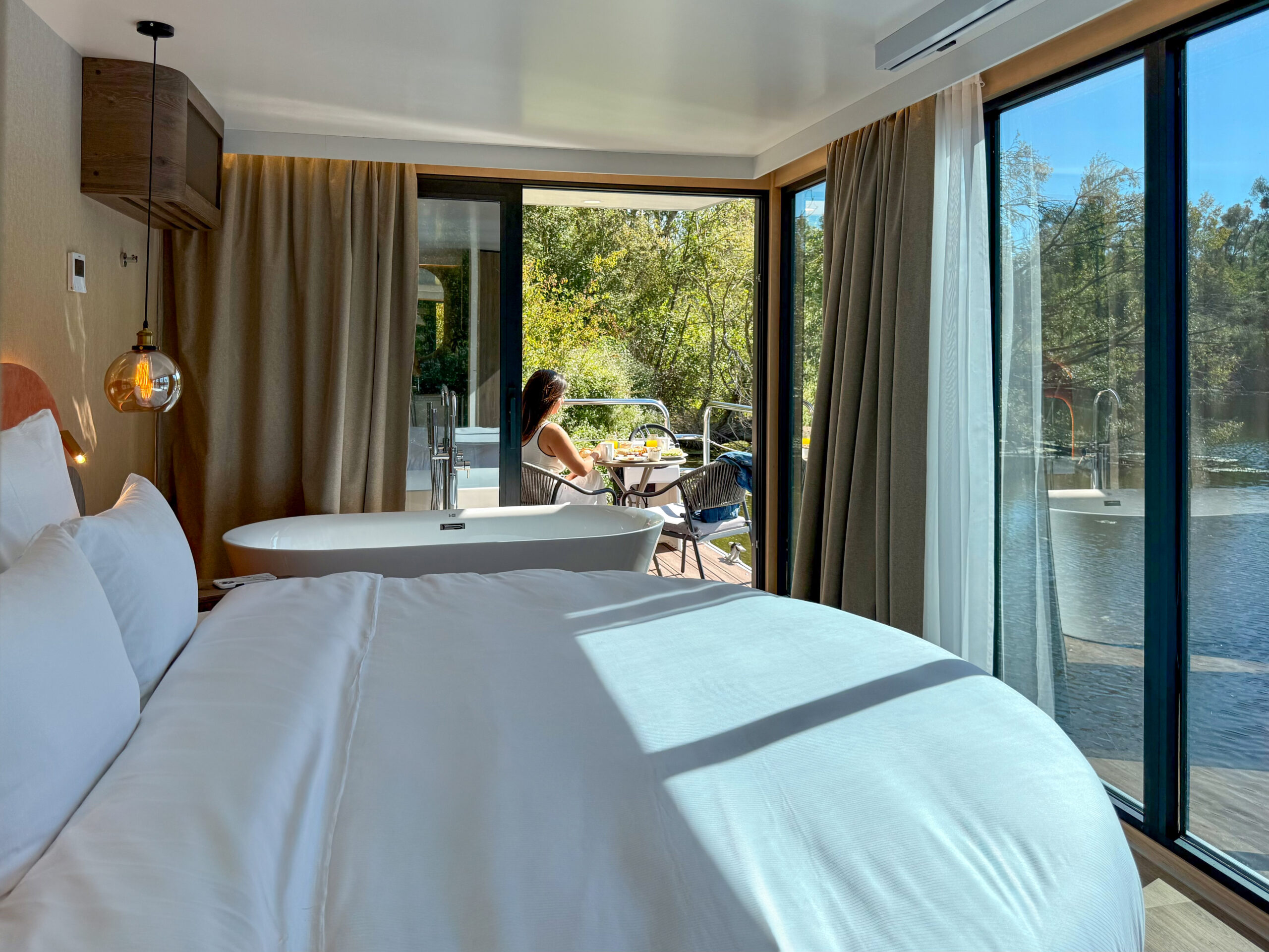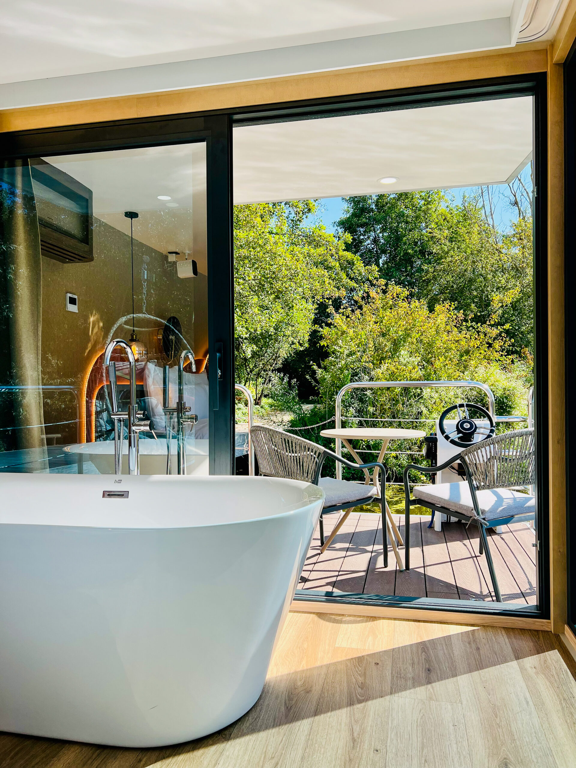 Nichée dans un cadre verdoyant au bord de l’eau, l’Escale Royale à Verneuil-sur-Seine vous invite à vivre une expérience unique alliant confort et sérénité. Ses élégantes suites flottantes offrent un véritable cocon de douceur avec vue sur le plan d’eau. Terrasse privative, baignoire balnéo, lit rond… tout y est pensé pour la détente et l’évasion.