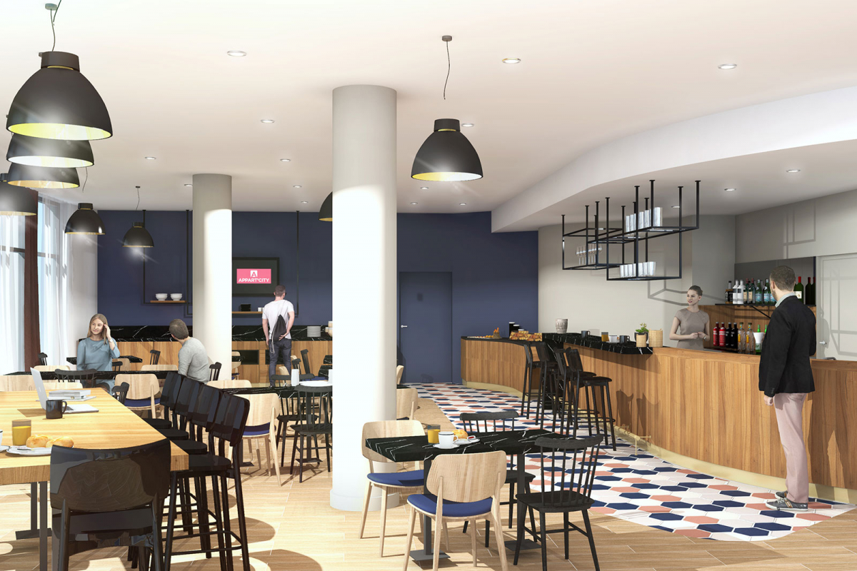 Nous proposons un petit-déjeuner sain, gourmand et généreux à base de produits de qualité et peu transformés. Pour les petits creux, à tout moment de la journée et de la nuit, une offre « Comptoir City » est disponible sur place ou à emporter dans votre appartement. L'appart-hôtel possède également un bar.