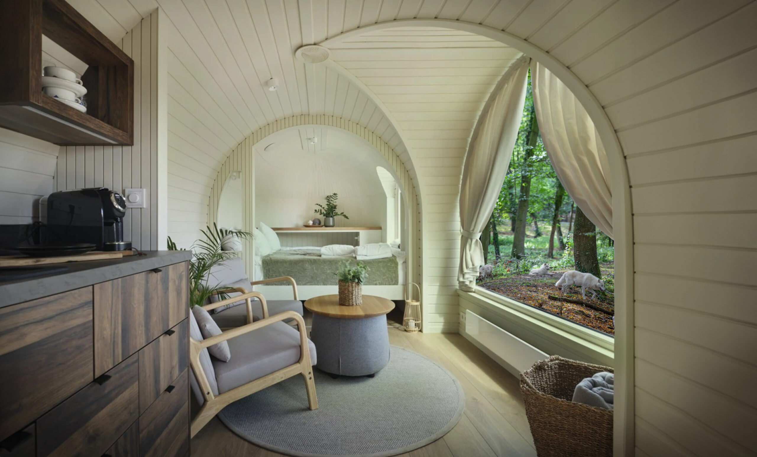 Ces véritables refuges en immersion se composent d'une chambre, d'un coin cuisine, salle d'eau et d'un espace salon avec une grande fenêtre laissant entrer la lumière naturelle, mais surtout avec une vue imprenable sur le territoire des loups d'Arctique.