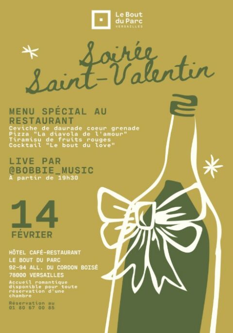 Et si cette année, vous fêtiez l’amour dans un cadre chaleureux et dépaysant ? Le Bout du Parc vous invite à une soirée spéciale Saint-Valentin au restaurant, accompagné d’un concert live de Bobbie à partir de 19h30.