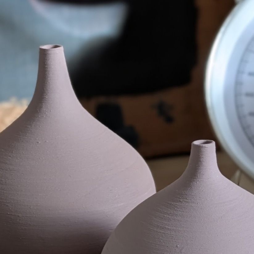 Les pièces produites sont ensuite tournassées (tour de potier), émaillées et cuites par les soins de la formatrice.