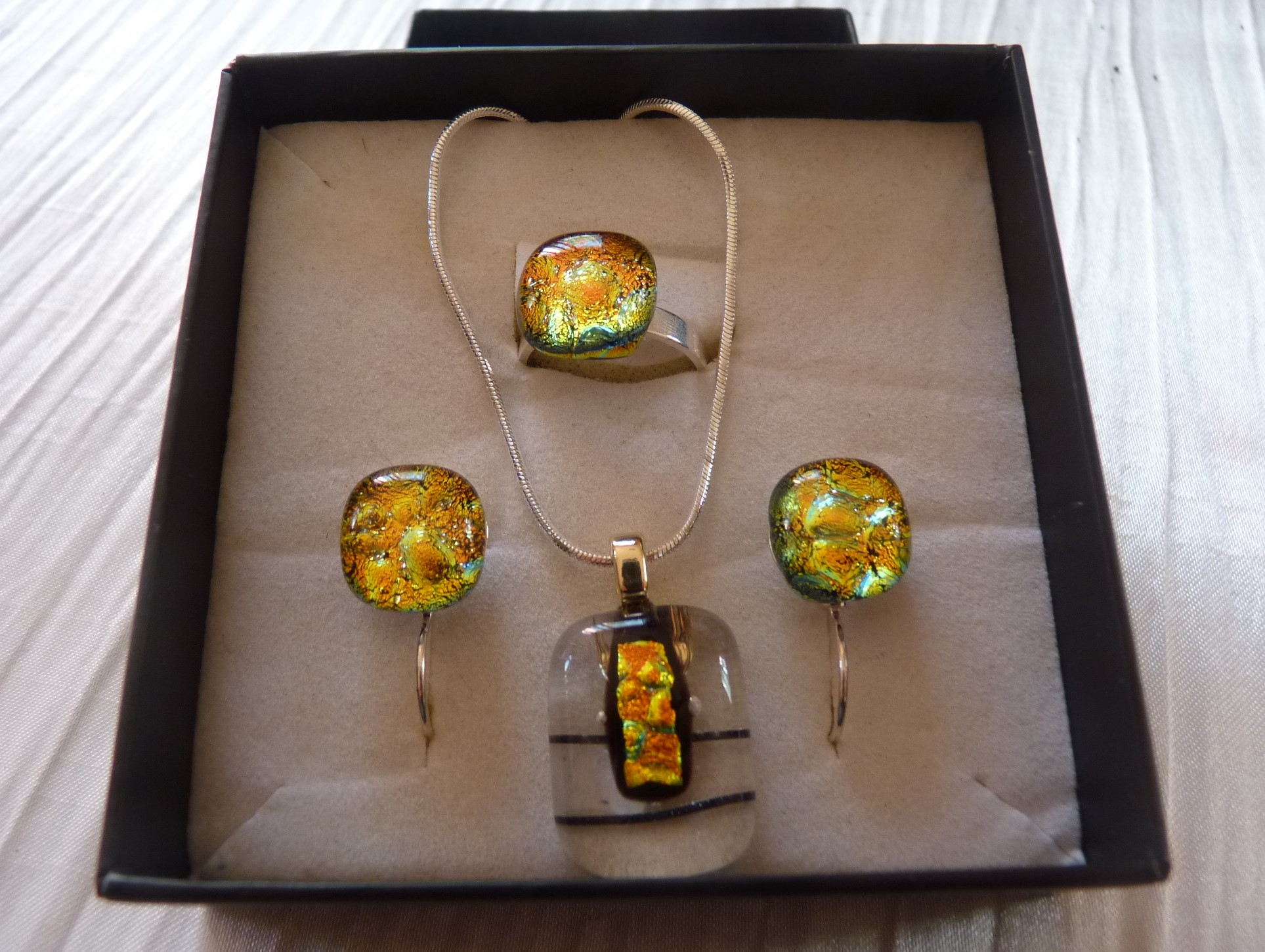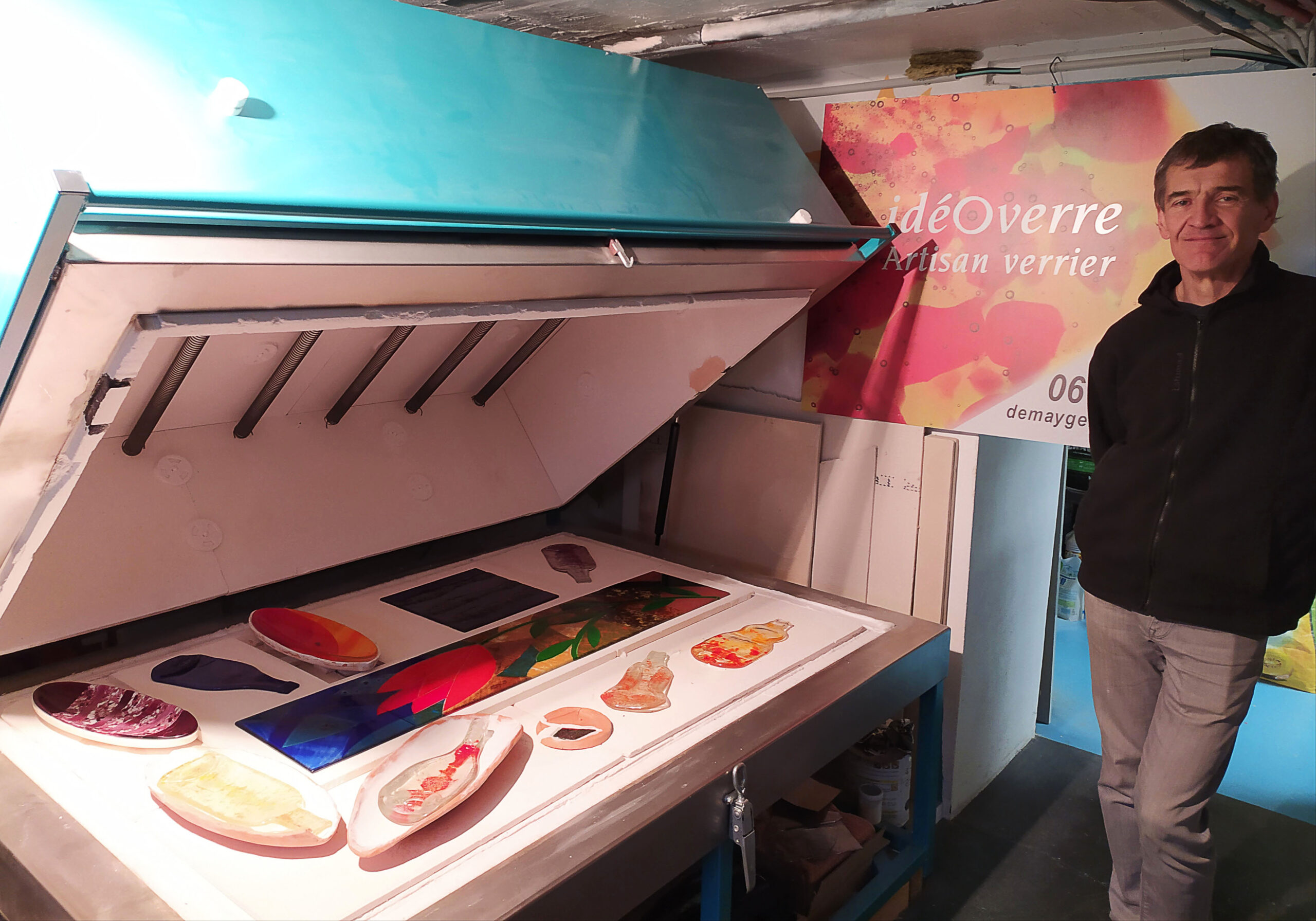 Dans son atelier, Germain Demay réalise des objets sur mesure : Bijoux, art de la table, carreaux de verre, luminaires, boutons cabochons ou de parfumerie. Il y organise également des stages et des cours, et répare vos bijoux abîmés.