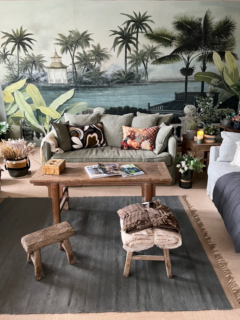 Dans un showroom inspirant, Laurence accompagne ses clients dans leurs projets de décoration intérieure : papiers peints, peintures, canapés, linge de maison, fauteuils chinés et restaurés, tapis et objets de décoration soigneusement sélectionnés.