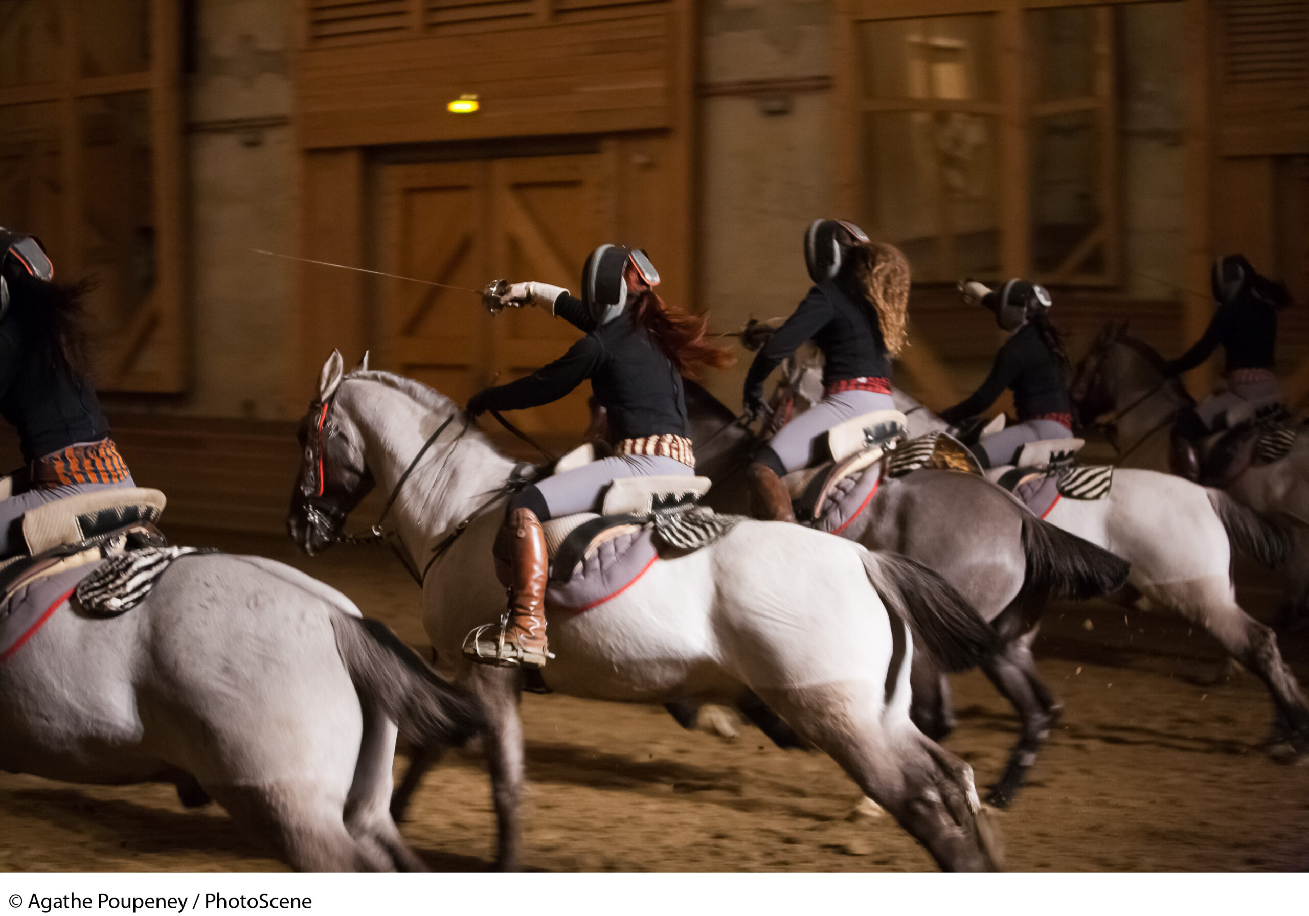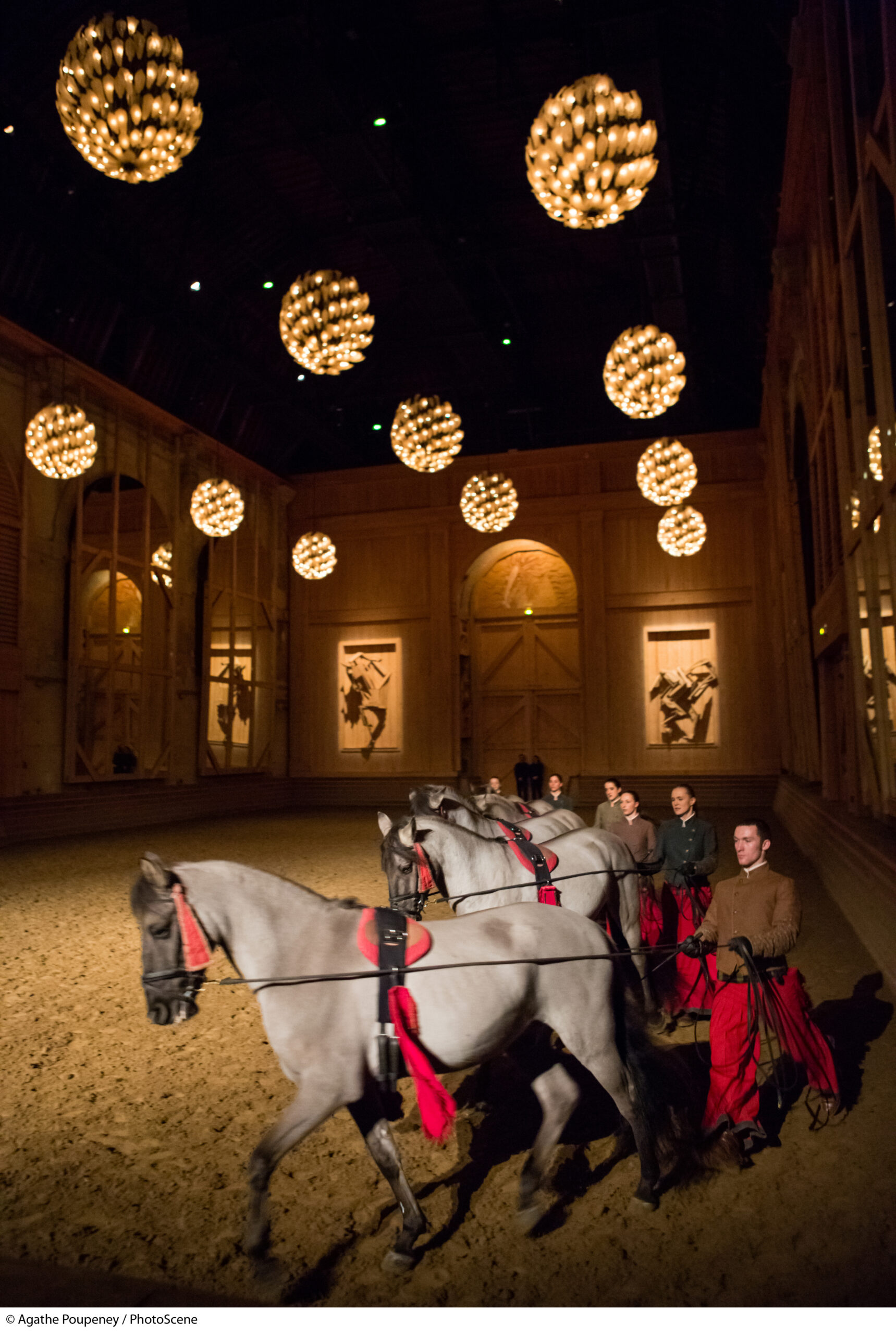 Dans le Manège de la Grande Écurie du Château de Versailles, l’Académie présente “La Voie de l’écuyère”, chorégraphié par Bartabas et reflet de cette compagnie école. D’une durée d’une heure, ce spectacle n’est pas simplement une reprise de dressage en musique, mais une représentation poétique du parcours d’apprentissage du couple écuyer-cheval.