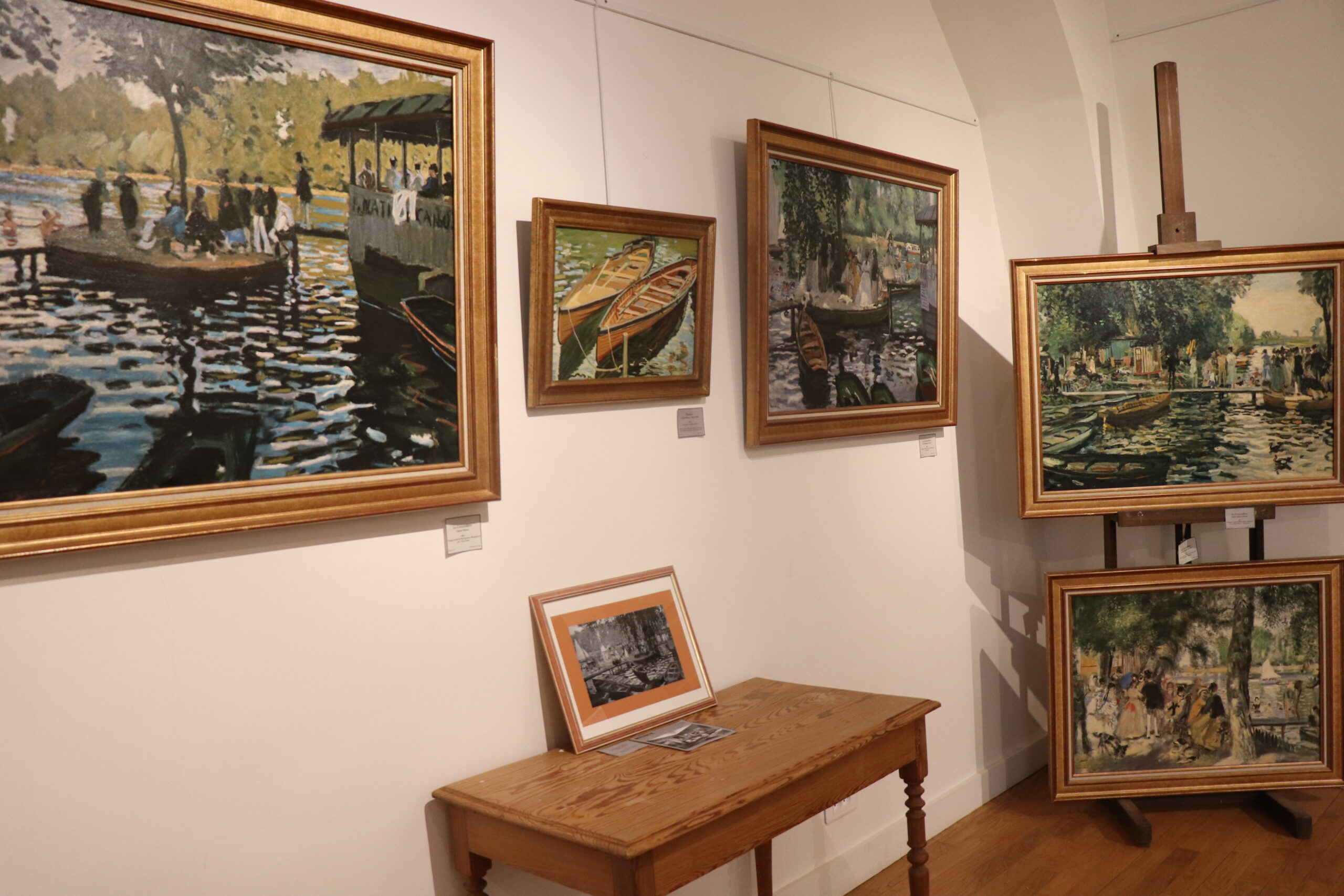 Le Musée présente une collection de gravures signées Crafty, Pelcoq, Lafosse, Robida, Grévin, Steinlen, des tableaux des petits maîtres des bords de Seine: Clary-Baroux, Heilbuth, Marius- Eraud, Maincent, Morlon…, les copies des toiles de Monet et Renoir qui ont immortalisé la Grenouillère en 1869 mais aussi des objets, décrivant la guinguette et les activités que l’on y pratiquait comme le canotage alors très en vogue, les bains froids, le bal du jeudi soir, sans oublier d’évoquer les paysages des alentours.