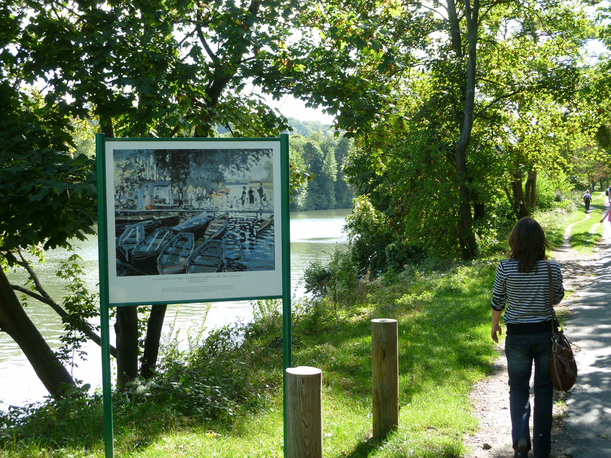 Ici vous croisez des reproductions de tableaux de peintres Impressionnistes. Elles font partie de parcours "Le chemin des Impressionnistes" qui vous permettent de découvrir une trentaine de tableaux des peintres qui ont habité ou séjourné sur ce territoire.