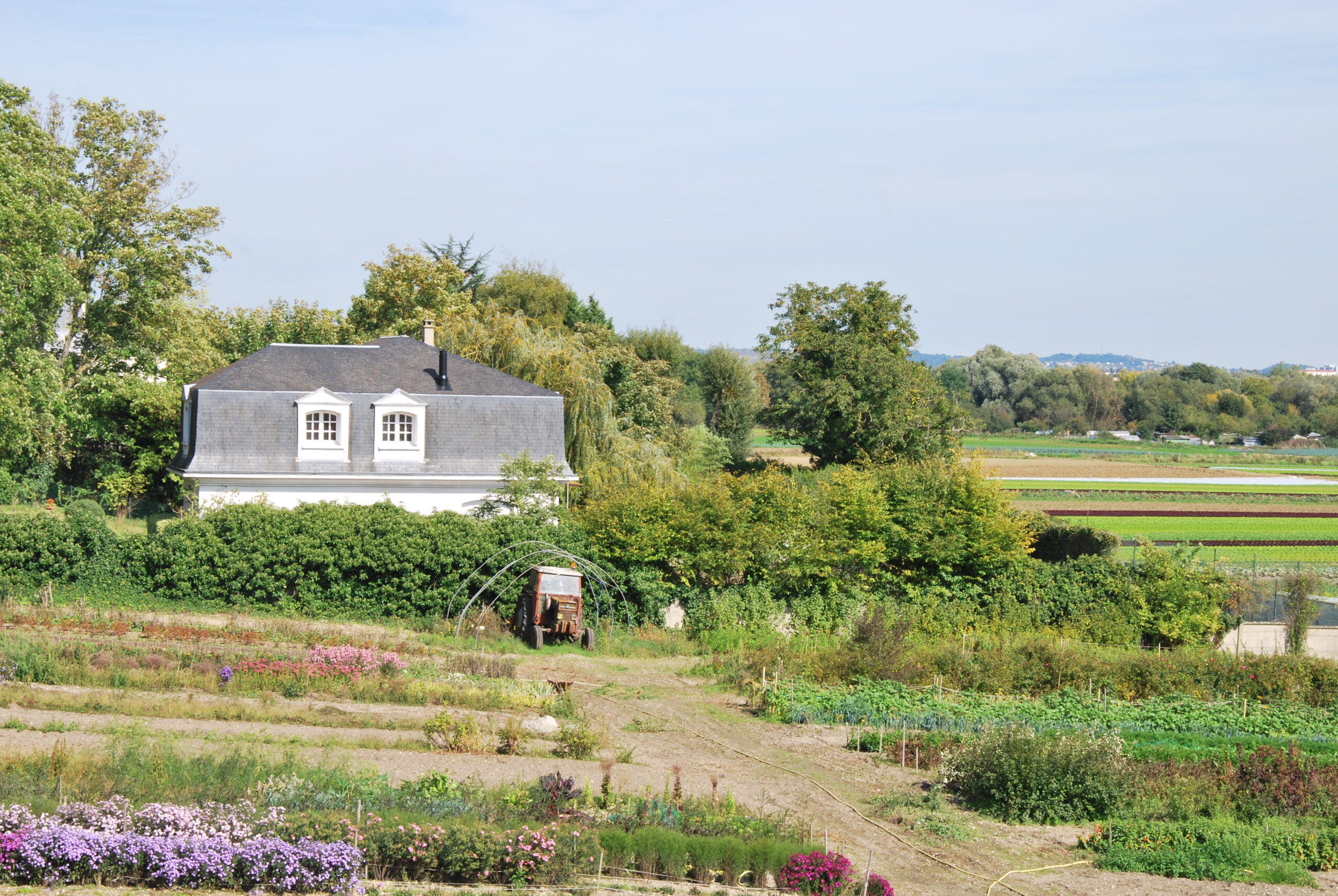 Départ du parking de la mairie du Mesnil-le-Roi. Prendre le chemin qui descend en contrebas (le long du parking vers les plaines maraichères)