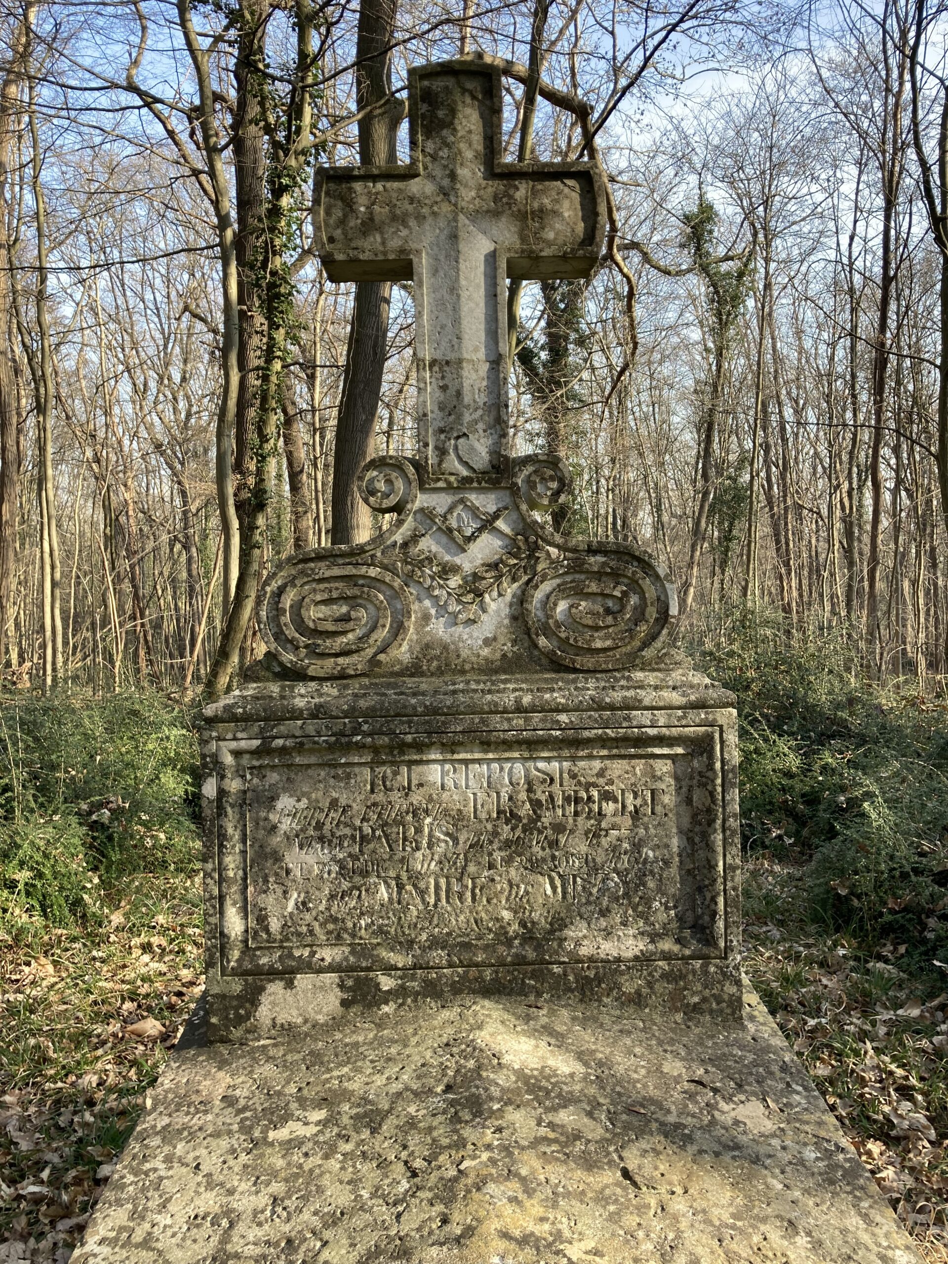 Avancez sur votre parcours et pénétrez à présent dans les bois, vous découvrez la tombe, marquée de symboles maçonniques, de Pierre-Etienne Erambert. Maire de Mézy-sur-Seine pendant plus de 30 ans au milieu du XIXème siècle, sa bienveillance et l’attachement des Méziacois à cet édile se lit à l’emplacement d’un ancien lavoir du village.