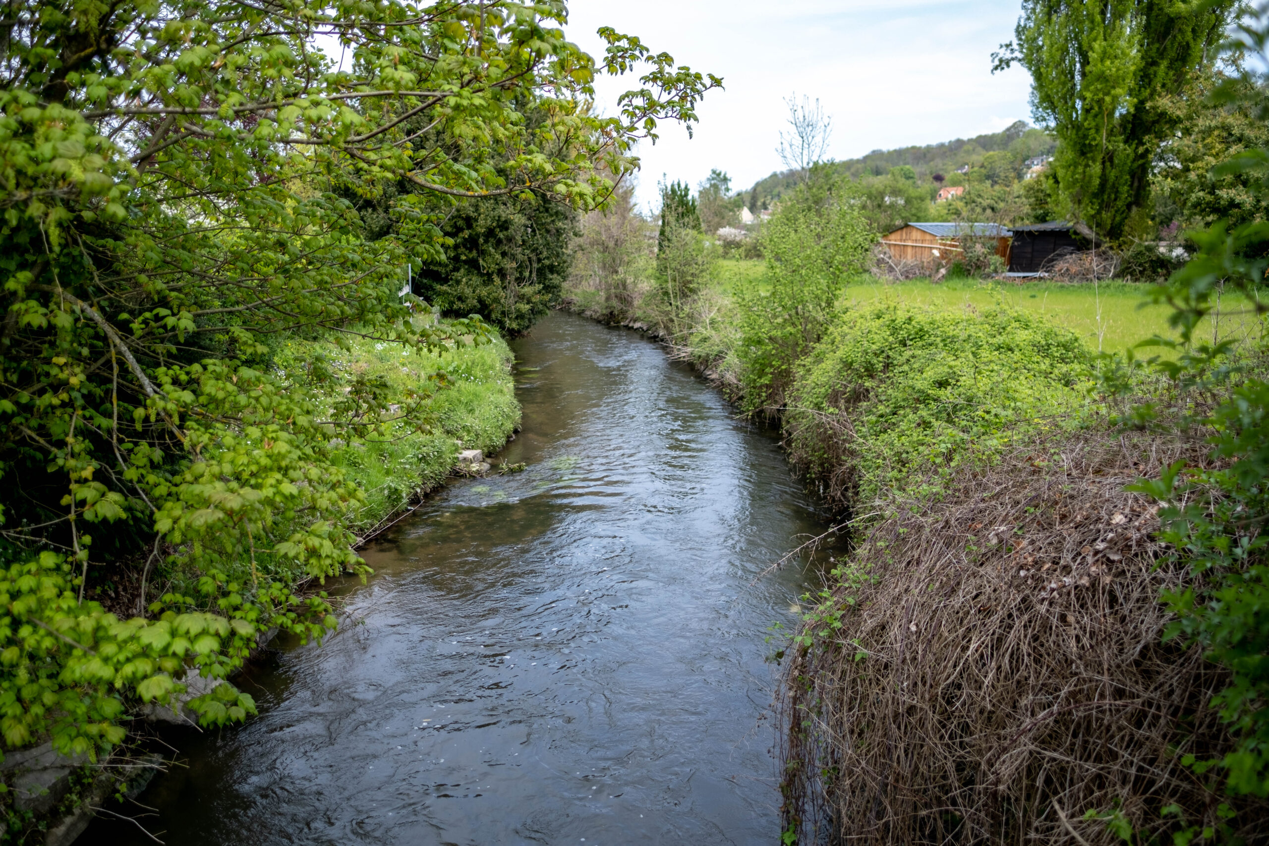 Pour arriver dans le village de La Falaise, la bien nommée, vous franchissez deux petits ponts qui enjambent La Mauldre. Votre premier arrêt sera alors pour l’église de la Nativité-de-la-Vierge, bâtie en 1597 par le seigneur du village Philippe de Marle. Il se dit que son sous-sol abrite l’entrée d’un souterrain creusé pendant la « Guerre des trois truies » qui a eu lieu entre 1846 et 1848 entre La Falaise et Nézel ! Remarquez la jolie fresque peinte sur le mur de l’école et de l’autre côté le charmant lavoir communal daté de 1891, puis continuez jusqu’à la mairie et, s’il est