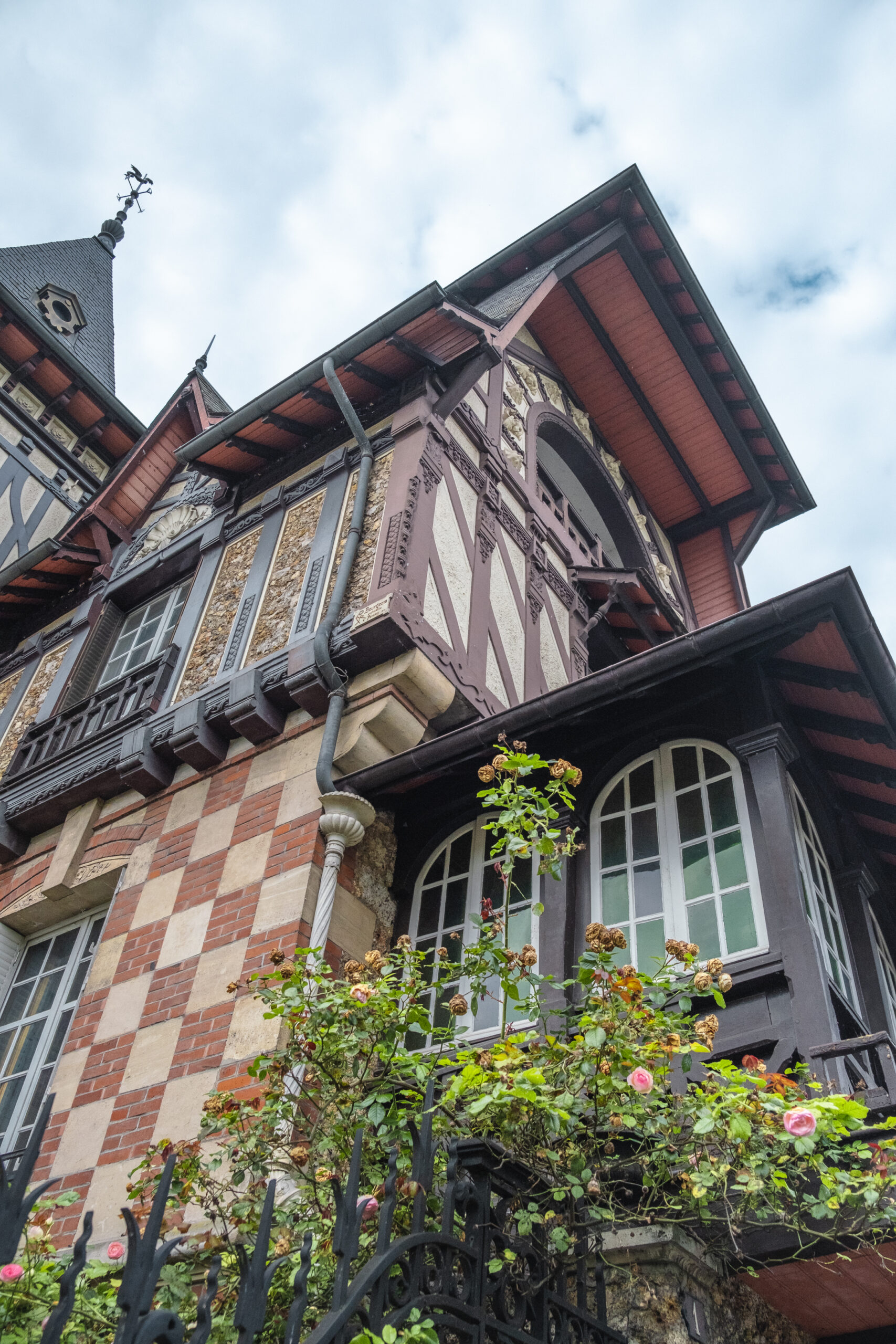 Remarquez cette belle maison blanche qui se dresse à mi-hauteur du parc, il s’agit de la Maison de Fer. Initialement bâtie en 1896, sa construction en tôles embouties suit le procédé élaboré par Joseph Danly, elle a été classée en 1975, fut littéralement soufflée par la tempête de décembre 1999, puis reconstruite à l’identique dans le parc Meissonier en 2019.