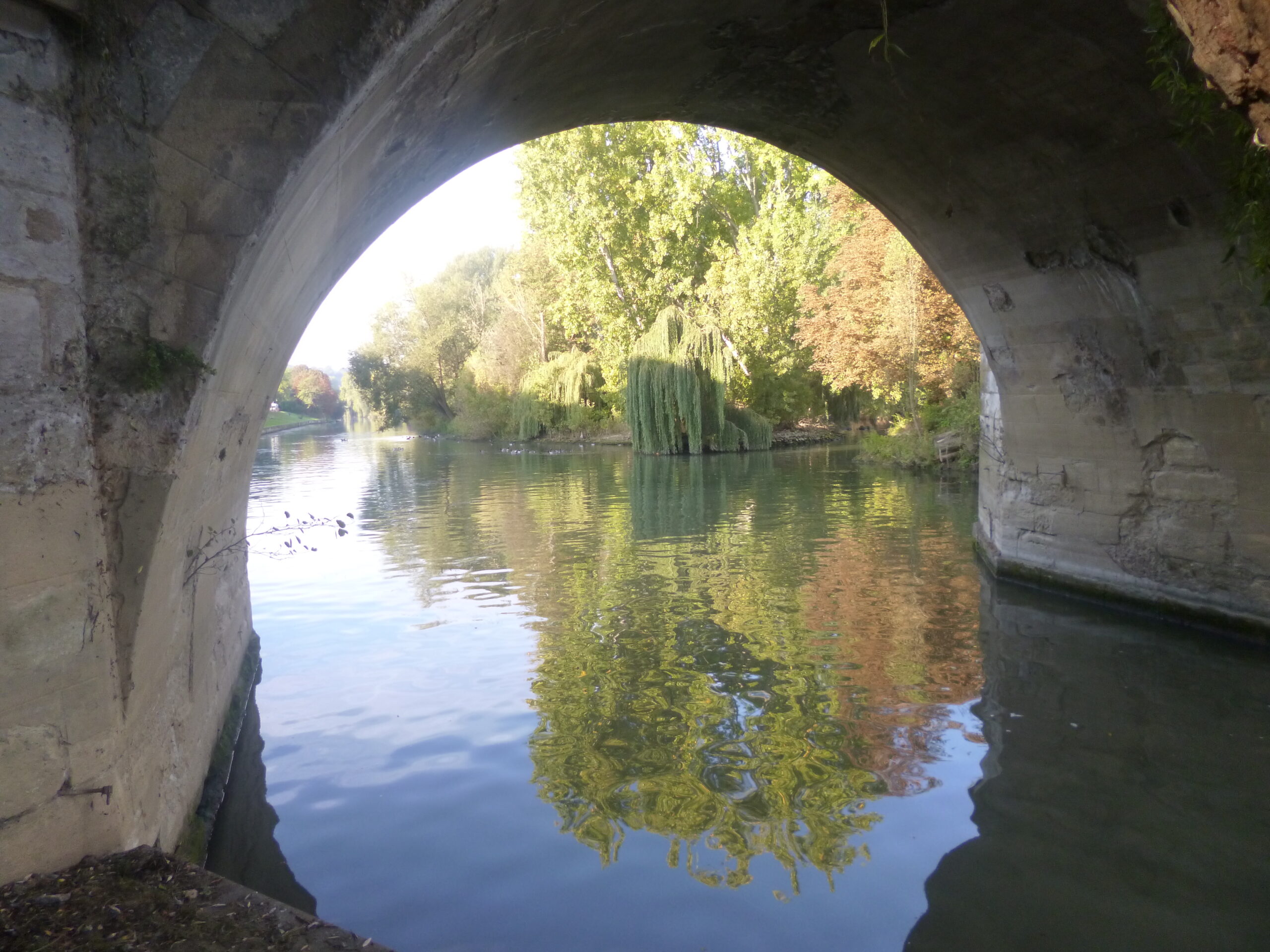Longez la Seine en l’ayant sur votre droite, passez sous la pile du pont encore debout, remarquez la hauteur impressionnante atteinte lors de la crue de 1910.