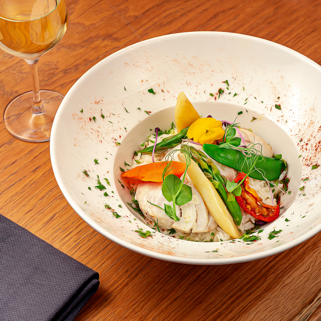 La Table du Petit Olivier c'est toujours 4 entrées, 4 plats, 4 desserts dont un plat végétarien et même vegan en faisant la demande auprès du Chef.