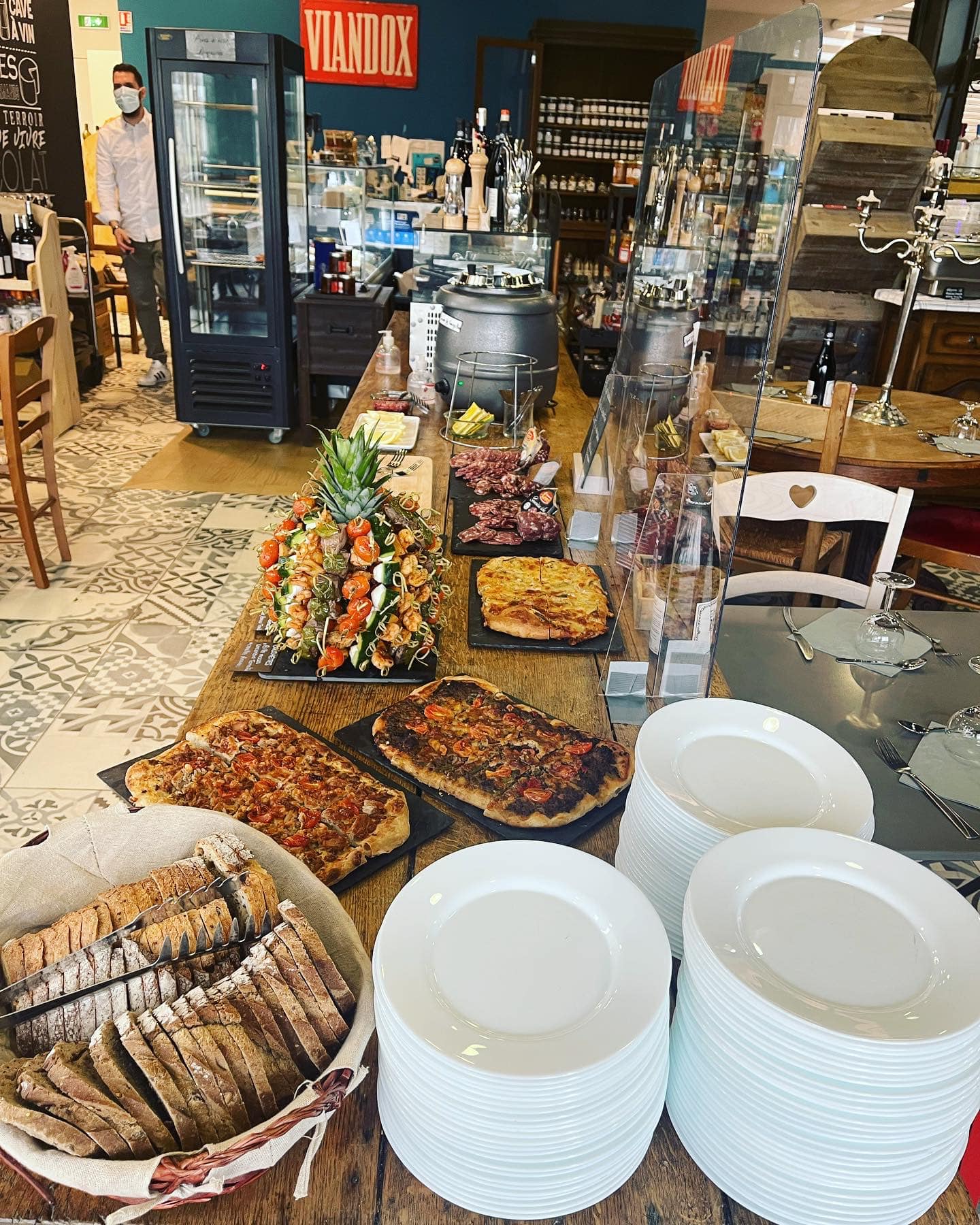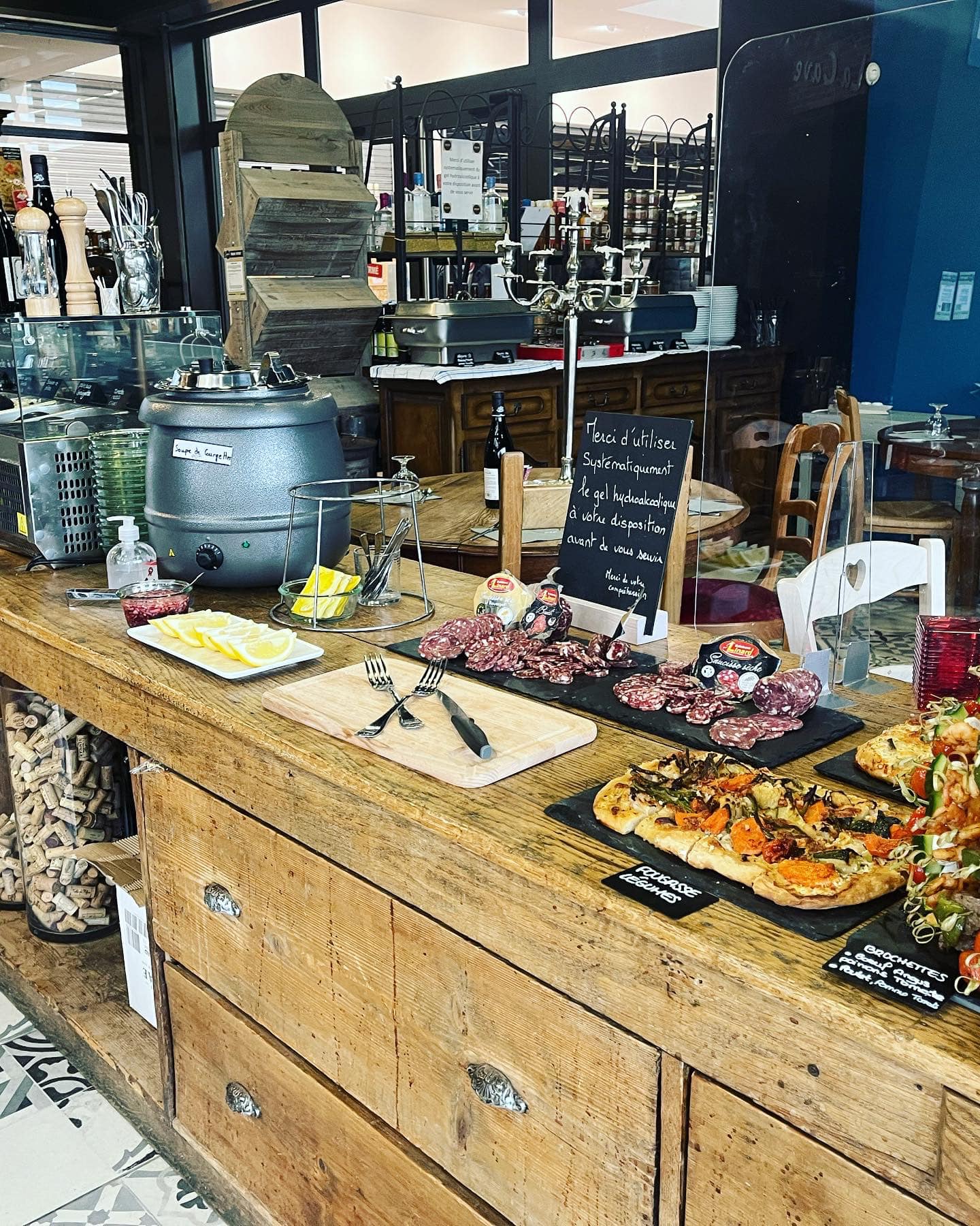 Tous les midis, un buffet vous est proposé avec diverses entrées, 2 plats au choix et des desserts.