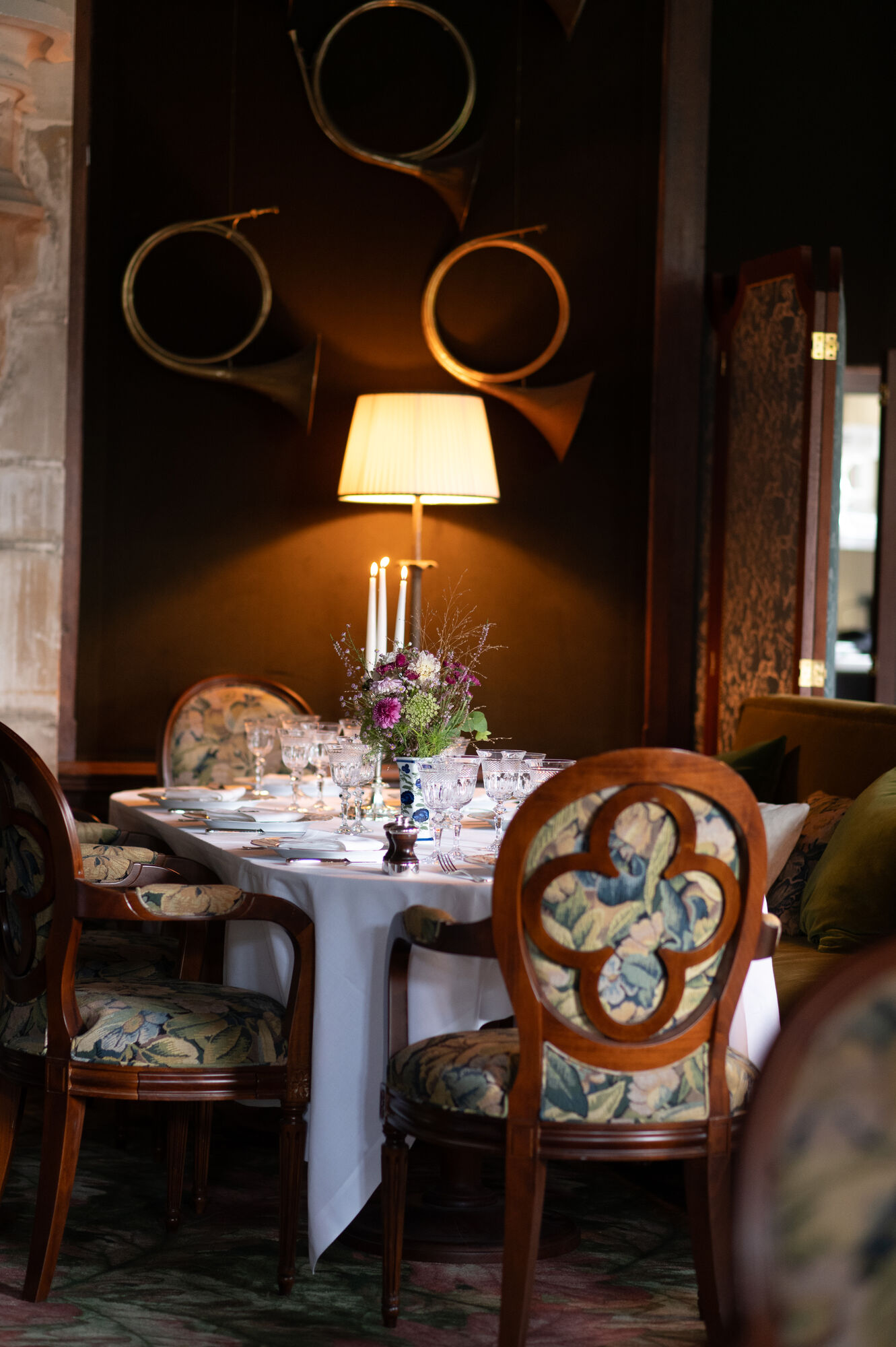 Les Chasses, la table la plus élégante et traditionnelle du Domaine, au cœur de l’Abbaye.
