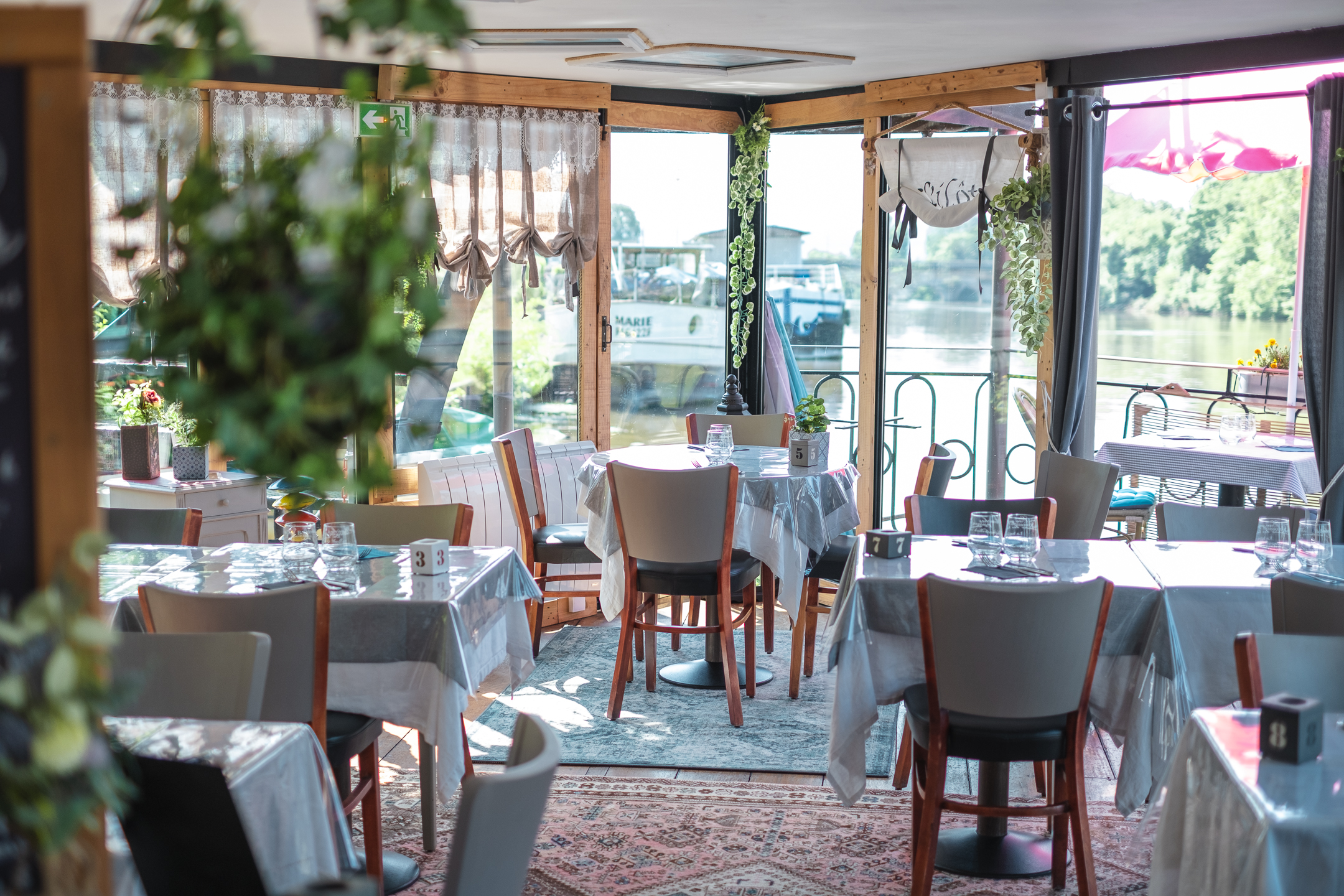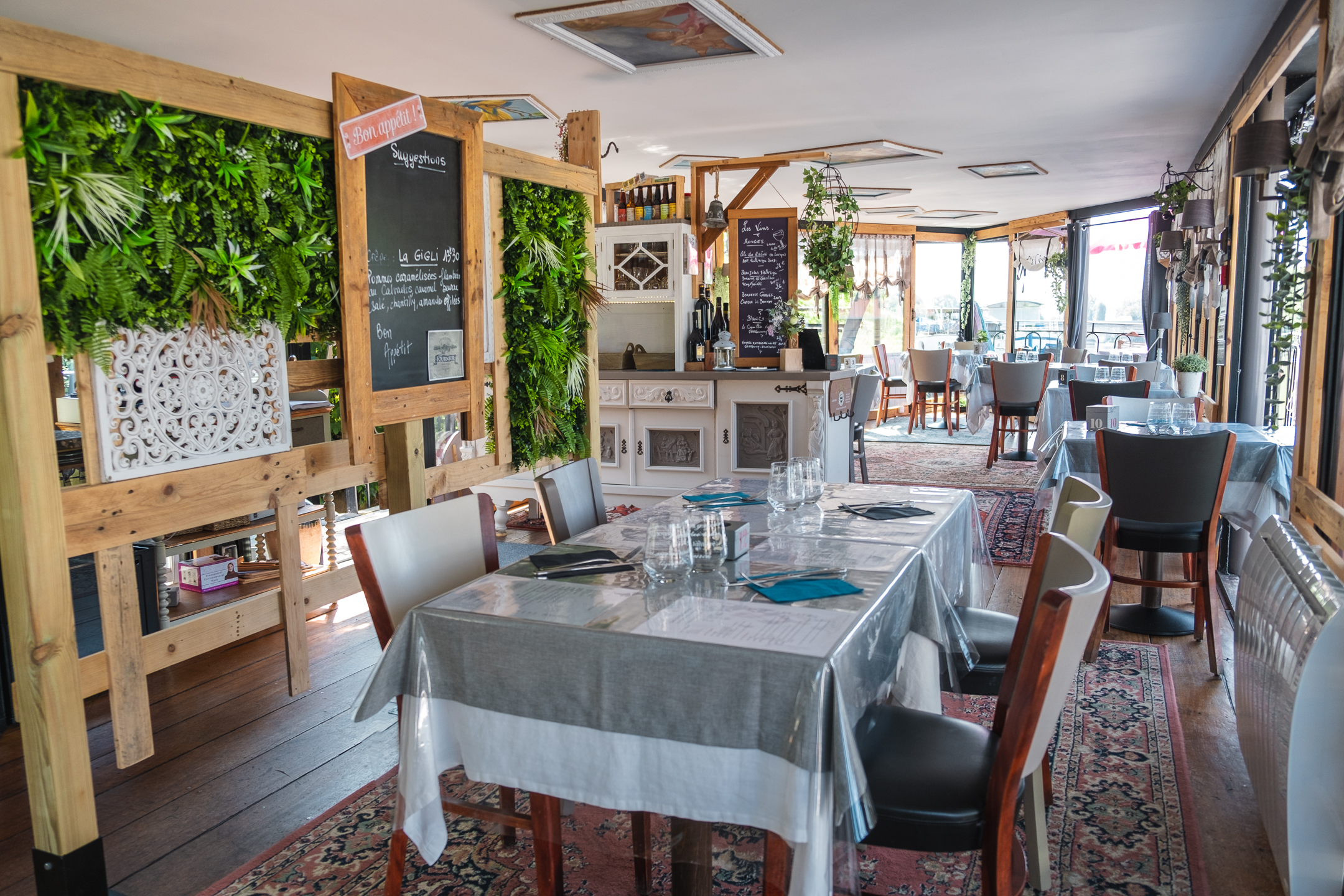 D’abord il y a le bateau, inspiré du Vaporetto vénitien, une promesse d’ailleurs, et d'un voyage gustatif. Puis l’accueil d'Anne et de Pierre, simple, chaleureux comme chez des amis, la salle du restaurant se découvre, cosy, comme une envie de prendre le large.