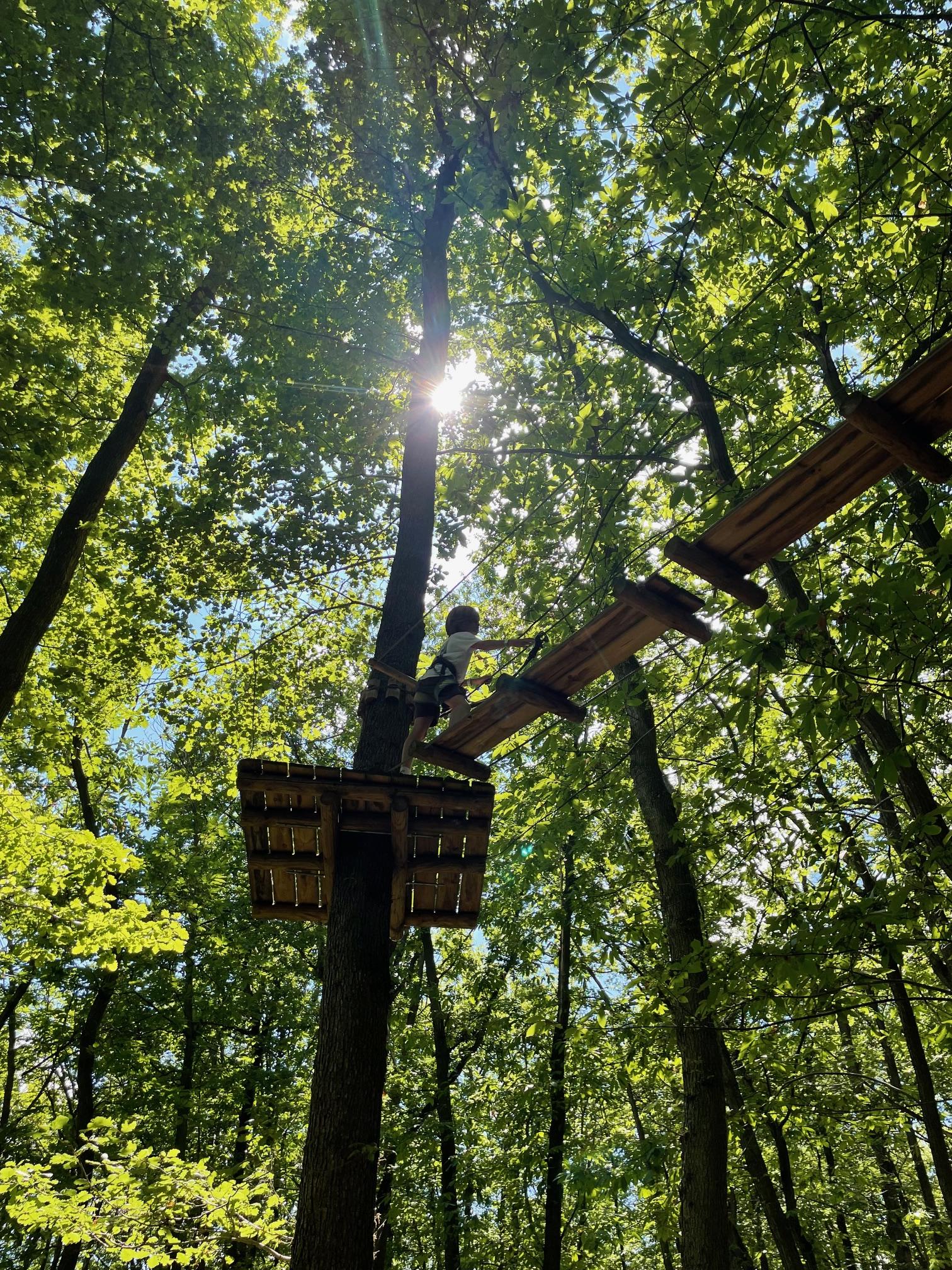 Perché entre ciel et terre, plongez au cœur de 54 hectares de forêt majestueuse. D’arbre en arbre, parfois centenaires, testez votre agilité sur des parcours allant de 3 à 18 mètres de haut. Adrénaline garantie !