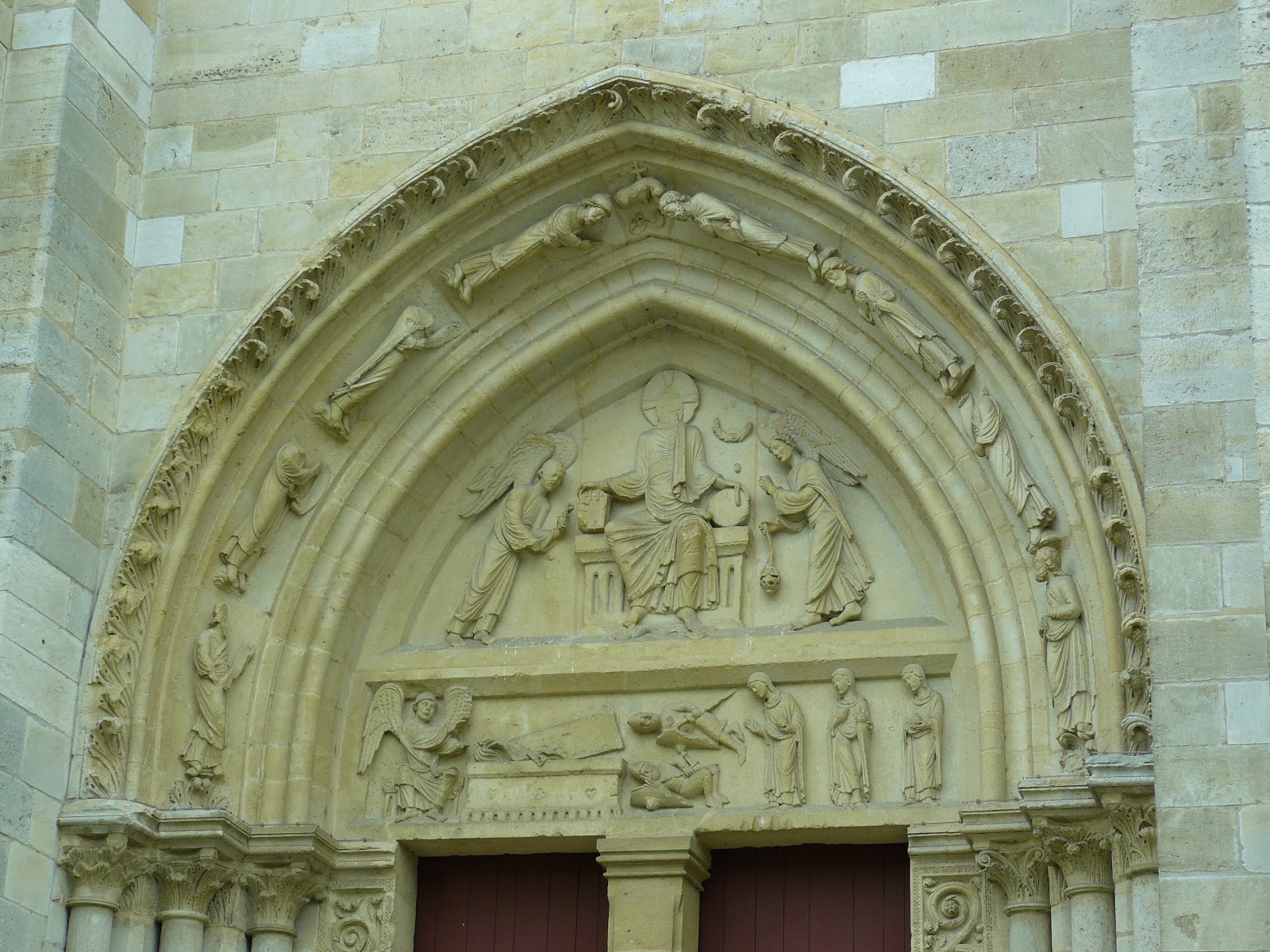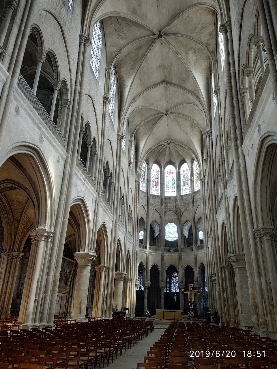 Cette église rappelle la cathédrale Notre-Dame de Paris par le style et par son élévation sur trois niveaux. La collégiale Notre-Dame se compose, au-delà du massif de façade, d’une nef de sept travées voûtées d’ogives sexpartites flanqués de collatéraux voûtés d’ogives quadripartites. Le haut vaisseau est à trois niveaux : grandes arcades en arcs brisés reposant sur une alternance de piles faibles et piles fortes, tribunes voûtées d’ogives quadripartites et en berceaux brisés transversaux, et enfin fenêtres hautes en arc brisé. Le chevet, qui vient compléter la composition, n’était originellement ceint d’aucune chapelle. Les chapelles rayonnantes, ainsi que celles des bas-côtés sont des adjonctions des XIIIe et XIVe siècles. La façade occidentale est percée de trois grands portails sculptés surmontés d'une rose, que viennent couronner deux tours dont l'aspect a été profondément modifié par les restaurations du XIXe siècle. Cette disposition s'inspire du modèle de la cathédrale de Laon. Le portail central, dédié à la Vierge, a été fortement endommagé pendant la Révolution.