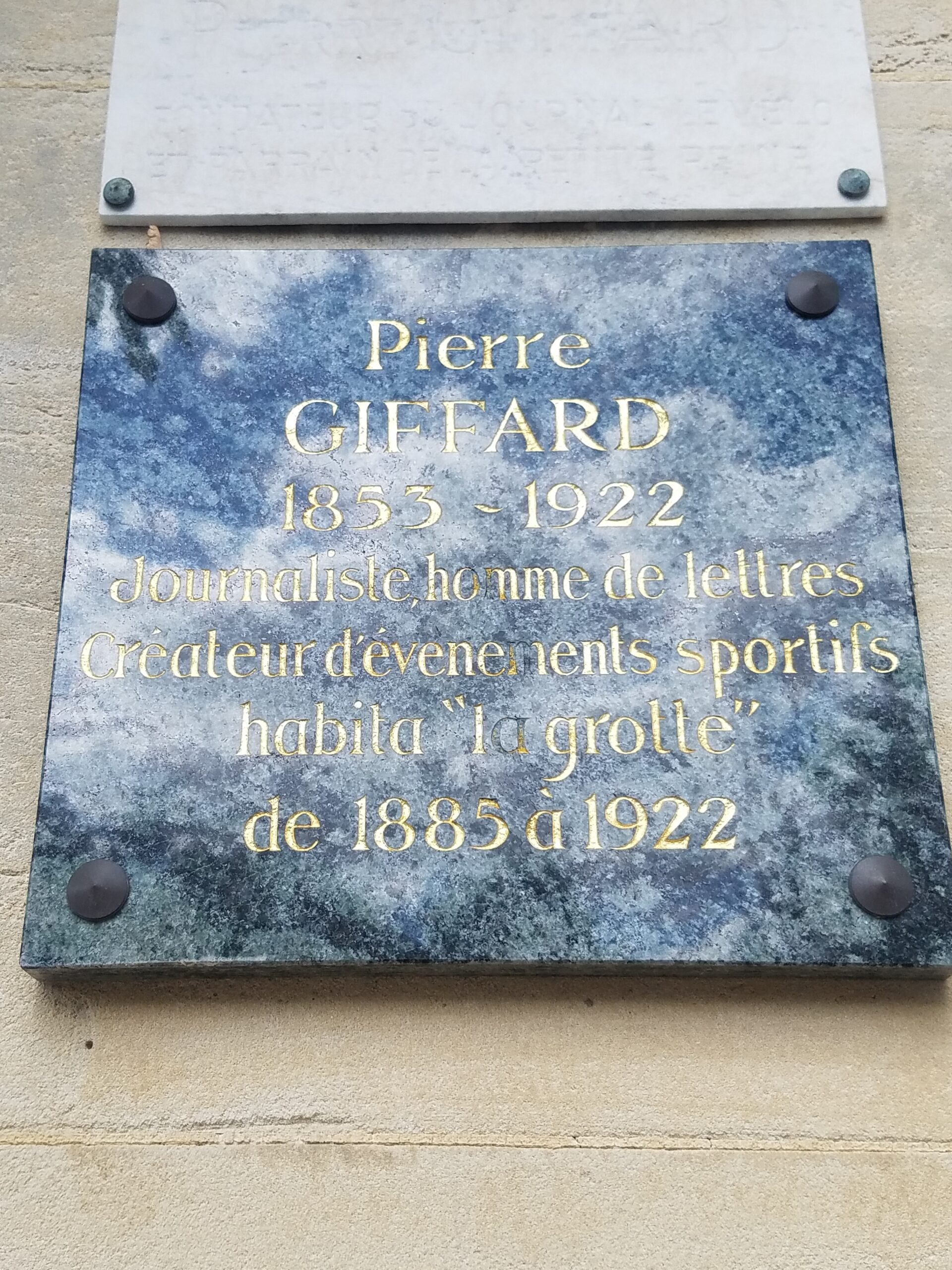Pierre Giffard, rédacteur au Figaro, fit édifier sa maison autour de cette grotte. Il est à l’origine de la première course cycliste Paris-Brest en 1891 qui donna son nom à un fameux gâteau en forme de roue de vélo, créé par le pâtissier Durand. En 1926 habitaient ici M. et Mme. Darmel, chanteurs à l’Opéra de Paris qui ont créé le conservatoire de Maisons-Laffitte.