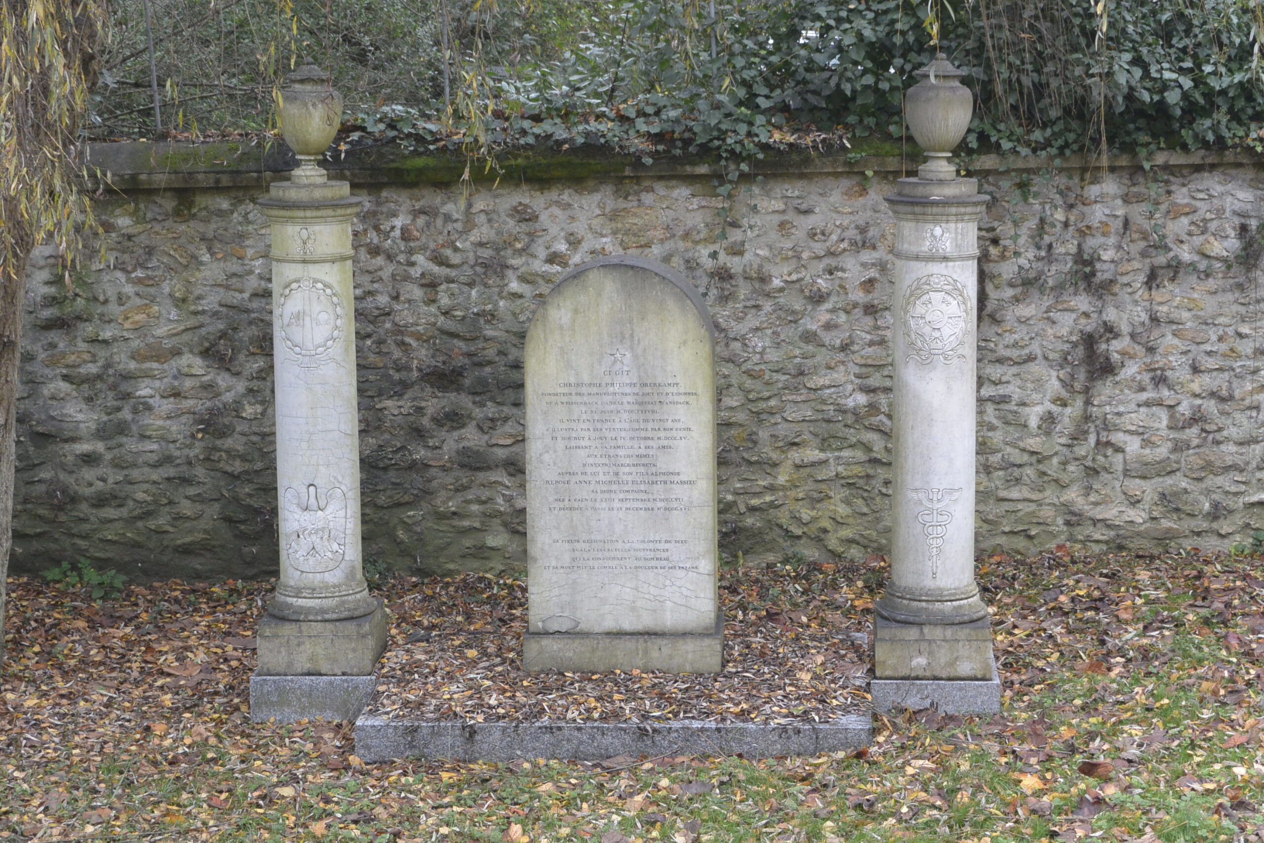 De religion protestante ils ne pouvaient pas être enterrés dans le cimetière communal. Leur lieu de sépulture initial, "L'Elysée", était un enclos funéraire familial aménagé par Madame Oberkampf dans le Parc du Domaine du Montcel, tout proche.